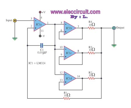 Nem a lábszámozás, hanem jelölése szerint építettem meg. Nem a Quad opampot vettem figyelembe, hanem a 5532-esét a kapcsolás szerint. Tehát a +a+,a-a- stb. Van egy másik kapcsolásom is. Ott pont az ellenkező a lábbekötés. Tehát ez így nem működhet? Mert akkó tervezhetem újra, úgy hogy a nem invertló bemenete kapja a jelet. Itt a másik kapcsolás: