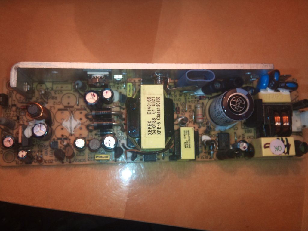 Ez a vékonykliens gép tényleg nem eszik sokat az adatlapja szerint:18W, emiatt érdemes vele foglalkozni. A kondenzátoroknál a 470µF -ot tartom legvalószínűbbnek, a beszerzésnél figyelj oda, hogy kis impedanciájú low esr legyen. Még egy gondolat. Standby módban a hűtés hiánya miatt is lassan kiszáradnak a kondenzátorok -8W-ot disszipál a kis méretű táp-, érdemes teljesen áramtalanítani.