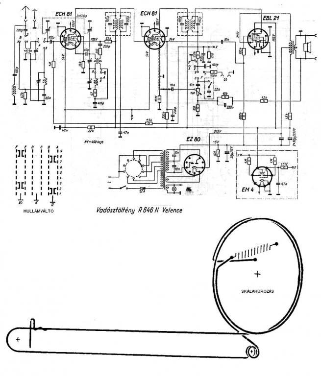 Mellékelem még a kapcsolási rajzot és a skálahúrozást.