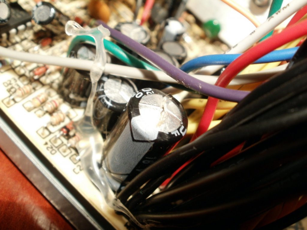 Szóval leszedtem a borítást, és láttam, hogy az egyik kondi felül szétrobbant. Látszólag sértetlen, nem buherált tápnak néz ki. A kondi 1000µF-os 16 V-os. Valakinek van ötlete, hogy mitől volt ez? Hogyan lehet orvosolni a problémát?