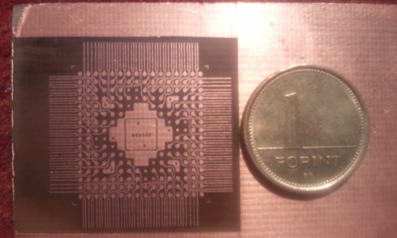 Nos ez az amivel készültem , hú vagy 10x 15x kellett újra csinálnom még sikerült. Ne kérdezzétek hány mill a vonalak nem tudom , csak azt , hogy szerintem ennél lejjebb már nincs .Ez egy BGA 256 , ja itt is mellékeltem egy 1 forintost ezek a vonalak már mikroszkóp alatt is kicsinek számítanak.