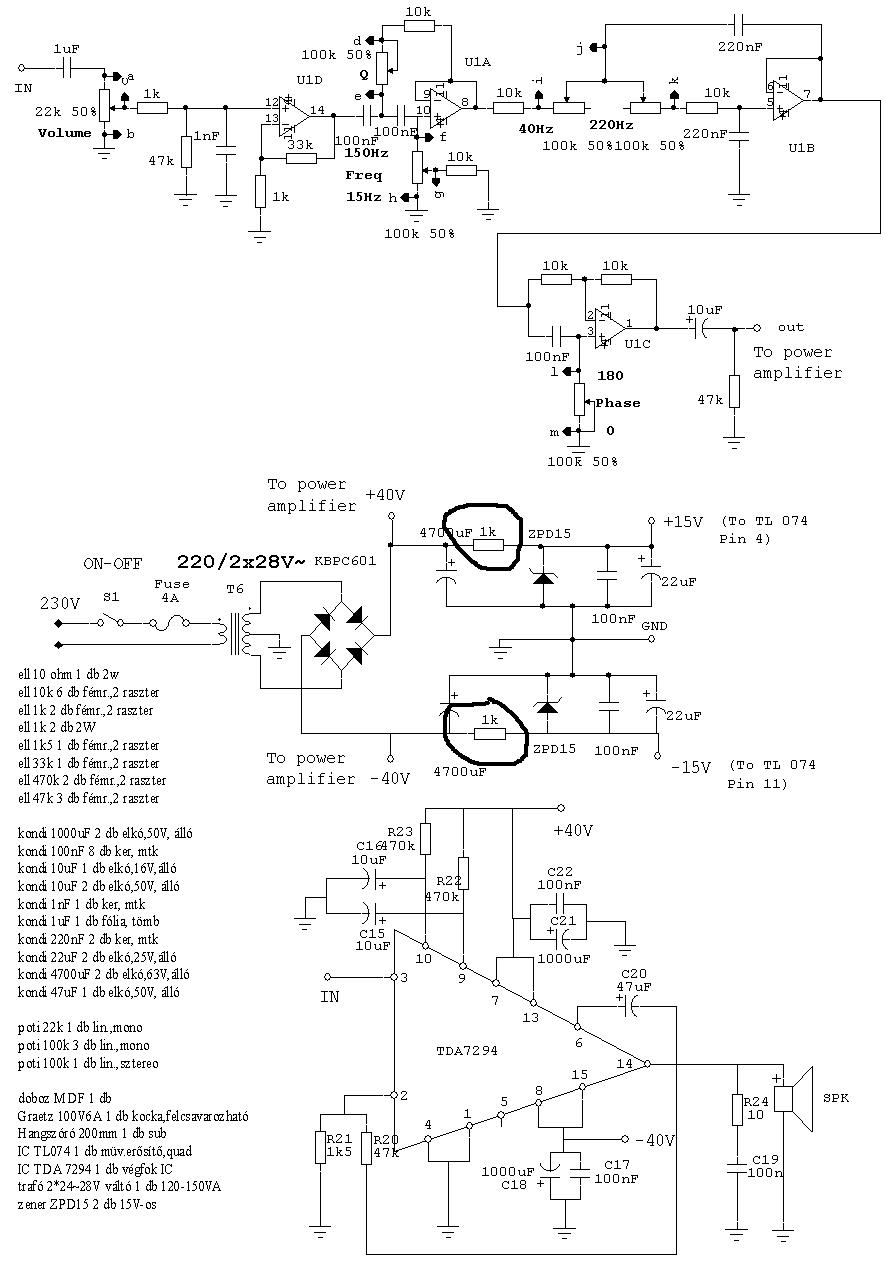 Arrol lenne szo hogy mellekelek egy szimetrikus tap szuresenek adott rajzot,mondjatok el a velemenyeteket,de en szemely szerint KARCSU-nak talalom szuresnek egy TDA7294-esel ellatott 100W-os Woofer vegfokozathoz.Arramellatast +/- 35V-ot ogenyel 9A arrameroseggel,epp ezert talalom kevesnek a szurest,de mellekelem a kapcsolasi rajzot es majd dontsetek el ti is hogy megfelel vagy nem,elore is koszike....