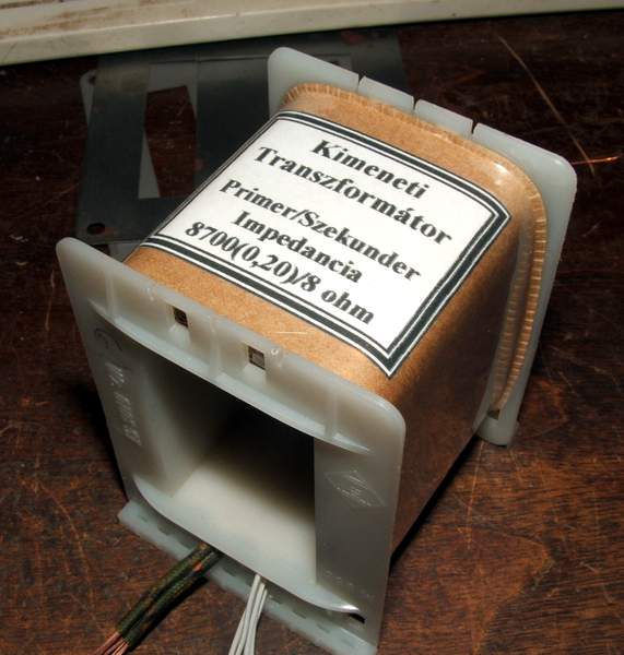 Ma csak egy 6P14P SE kimenővel lettem készen. Primer 3x840 menet 0,22 szekunder 2x48 menet 0,8-as huzalból SM65 magon. DC ellenállása 135 Ohm lett a primernek.