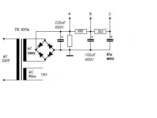 Én nem egészen úgy csinálom ahogy a doksiban van. Itt az én változatom. A graetz után tehetsz bele anódfesz késleltető relét is.