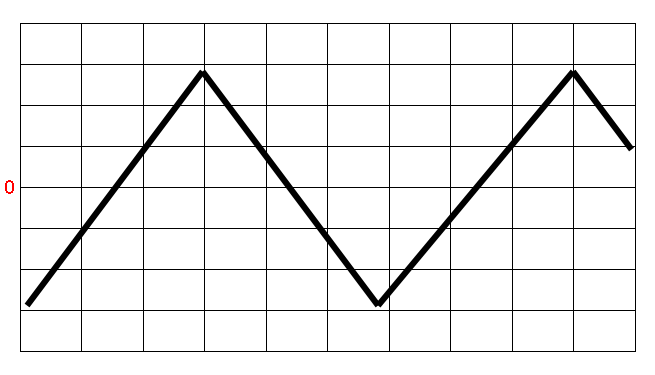 Egy oszcilloszkóp képernyőjén az alábbi ábra látható. A bemenet kapcsolója DC, a bemeneti osztó 50 mV/div, az időalap generátor 0.2 ms/div állásban van. A jelet három különböző elven működő műszerrel is mérjük váltakozó feszültségmérő üzemmódban. (ld. kép).