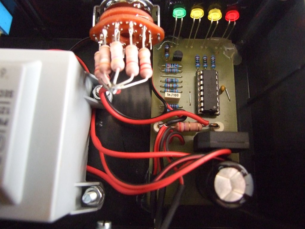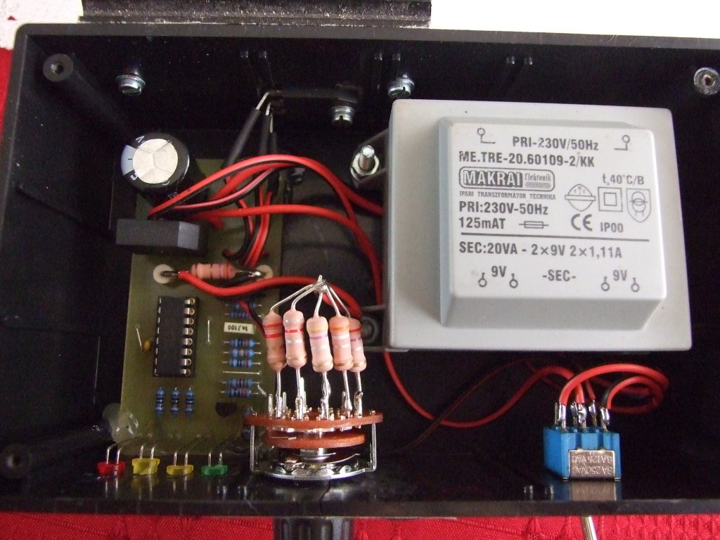 valami hasonló, mert ebben is van egy vörös két sárga és egy zöld led, csak itt van egy 6v-12v kapcsoló és egy áramerősséget szabályzó tekerős kapcsoló
