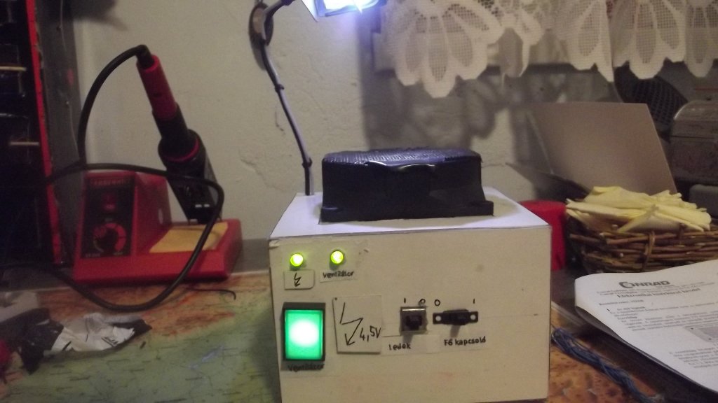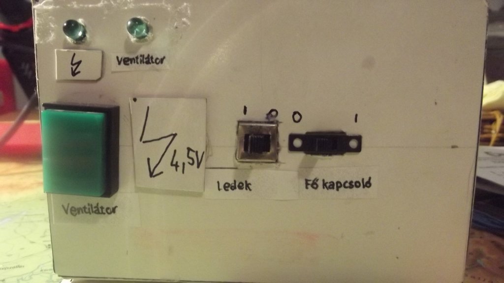 :részei 3db kapcsoló 4db led (jelző+világitó) 4,5 v-os elem és 1db 12v-os ventilátor Én 14 éves vagyok ugyhogy szeretném ha nem szólnának le. Egy pár kép róla: