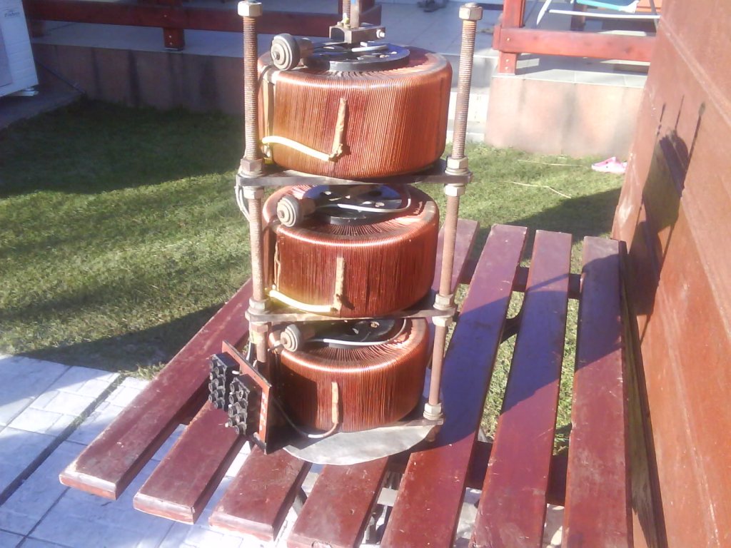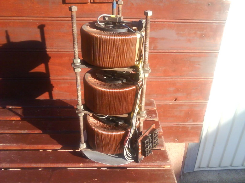 Semmiképp ne bontsd szét. Ez egy háromfázisú változtatható kimeneti feszültségű toroid transzformátor. 3×400 V -ból lehet vele csinálni 3 × 0 - 400 V feszültséget, vagy 400 -nál többet, mert ahogy nézem van leágazás rajta. Ki kellene mérni, hogy a közbenső leágazásra kell tenni a 400 V -ot. Aki hosszú vezeték végén lakik, biztos örülne neki.