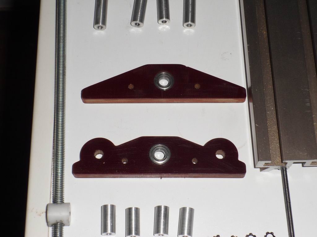 Szóval, a lapos alátétek házastól mindenestől kicserélve, átalakítva csapágyassá, a munkautak meghosszabbítva (Y +30mm, X +40mm). Minden alkatrészt saját maga készítette a gép, úgy gondolom, ha egy csapágy perselyt ki tud marni pontosan, jó illesztéssel akkor már nagy gond nem lehet.
