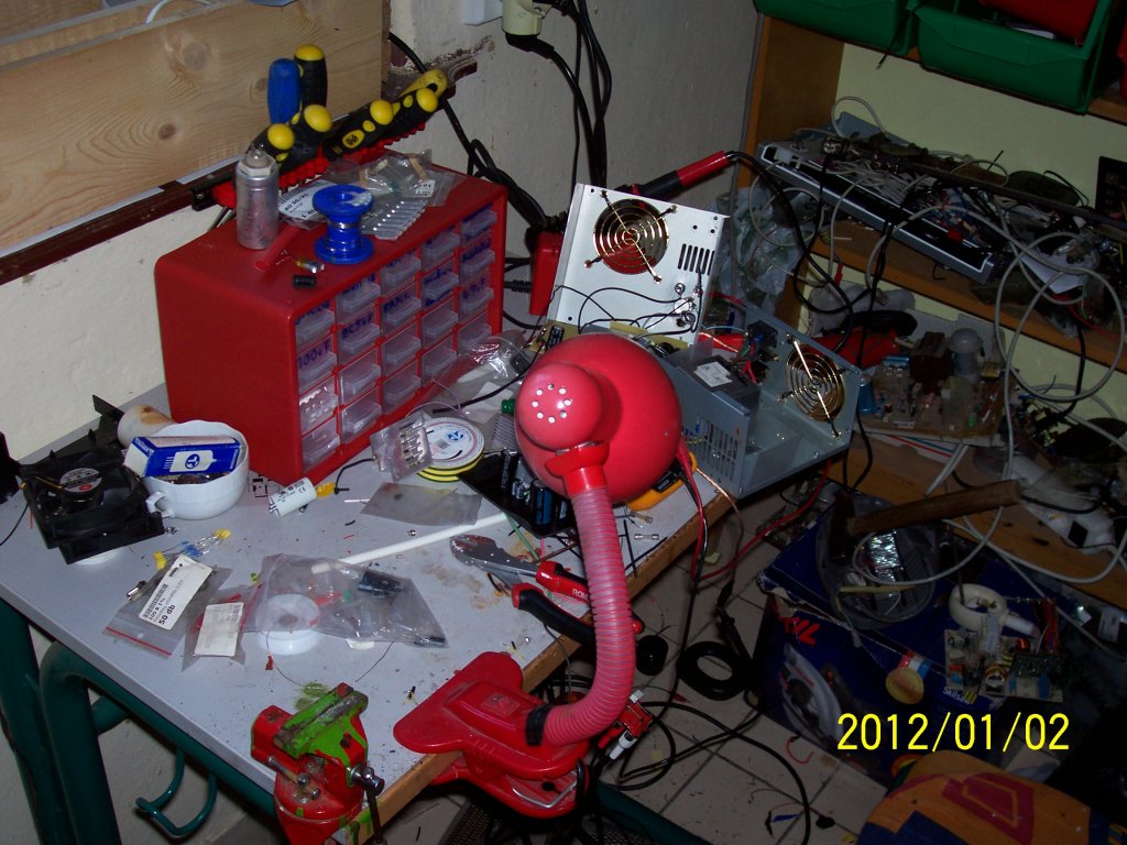 Immár harmadjára teszek fel képeket a műhelyemről. Kaptam karácsonyra a képen látható alkatrésztárolót, és egy forrasztóállomást.