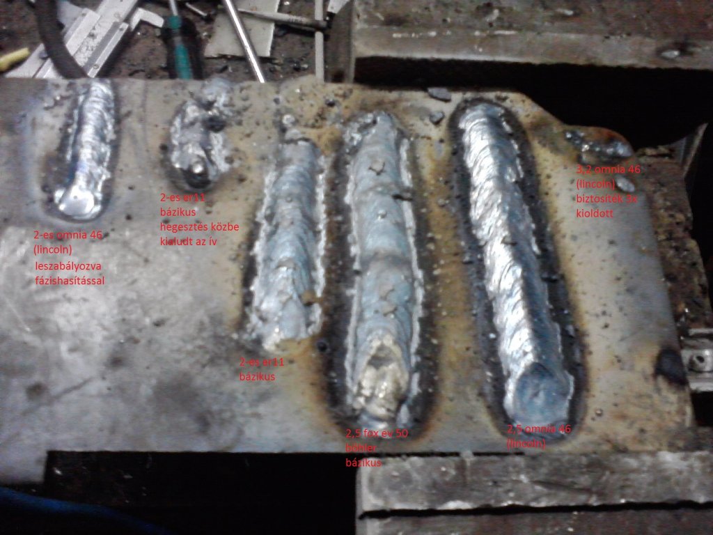 10: újfajta fojtóval, átváltva böhler fox ev 50 2,5-ös elektródára egy szál lehegesztése, egész könnyű ívgyújtással (eddig 2-es eb11 volt)