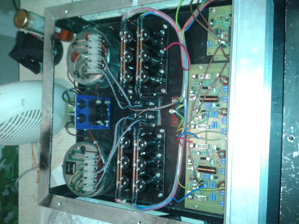 Mint látható, hűtőborda jelenleg csak az egyik oldalon van. Az erősítő folyamatosan megy, de csak itthoni használatra, és nem teljes teljesítménnyel, Így még a hűtéssel gondom nem volt. Persze 'csumára" kihajtva így nem bírná. Az áthuzalozással kapcsolatban köszönöm a tanácsot. Igyekszem megfogadni. Üdv... Subi