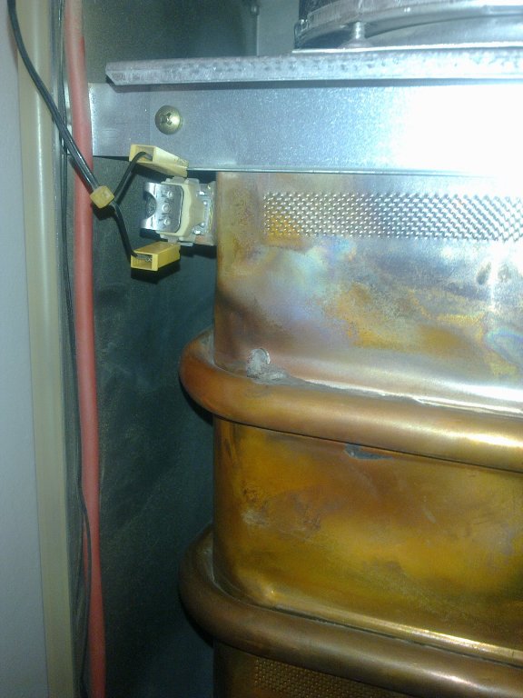 Ez az. Ez biztosan nem szakítja meg az áramkört, mikor a hiba jelentkezik- folyamatosan zárva marad? Mennyi az NTC érzékelő értéke szobahőmérsékleten? Ha pl hideg rendszernél beindul a fűtésed, felmelegszik a víz 50C-ra a kazán előremenőjébe, és te kikapcsolod a termosztátot, majd újra bekapcsolod a termosztátot, indul hiba nélkül a kazán? Állítsd lejjebb a kazán hőmérsékletét, és akkor mit csinál
