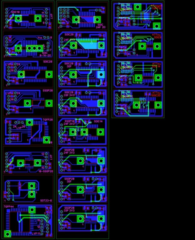 Elkészült egy, kereskedelemben "nem igazán kapható" SMD PIC és AVR programozó adapterkártya "készlet".
