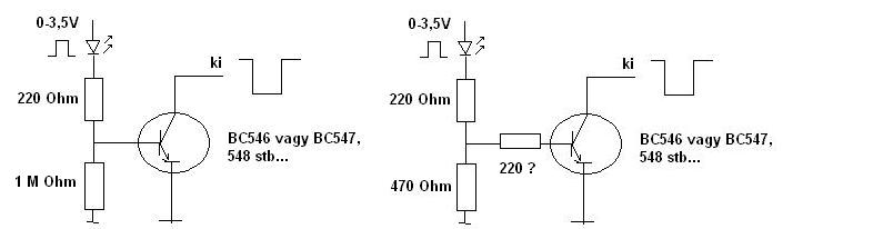 Ehhez kapcsolódik a képen látható NPN tranzisztor ami a kimenetére földet kapcsol ha a led világít (ez aztán megy tovább egy opto csatolóra stb...).