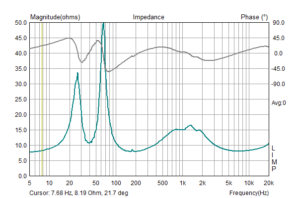 Ahol a két hangsugárzó fedésben van ott az "ellenállásukat" is aszerint kell kiszámolni. De hogy ne legyen olyan egyszerű a hangszórók ellenállása nem állandó teljes sávban ,hanem eléggé váltzó tud lenni. Ezt nevezik impedanciagörbének. Meg kell érteni azt ,hogy a hangszóróknak impedanciája van, és nem ellenállása. A képen egy kétutas reflex doboz , teljes impedanciája látható.
