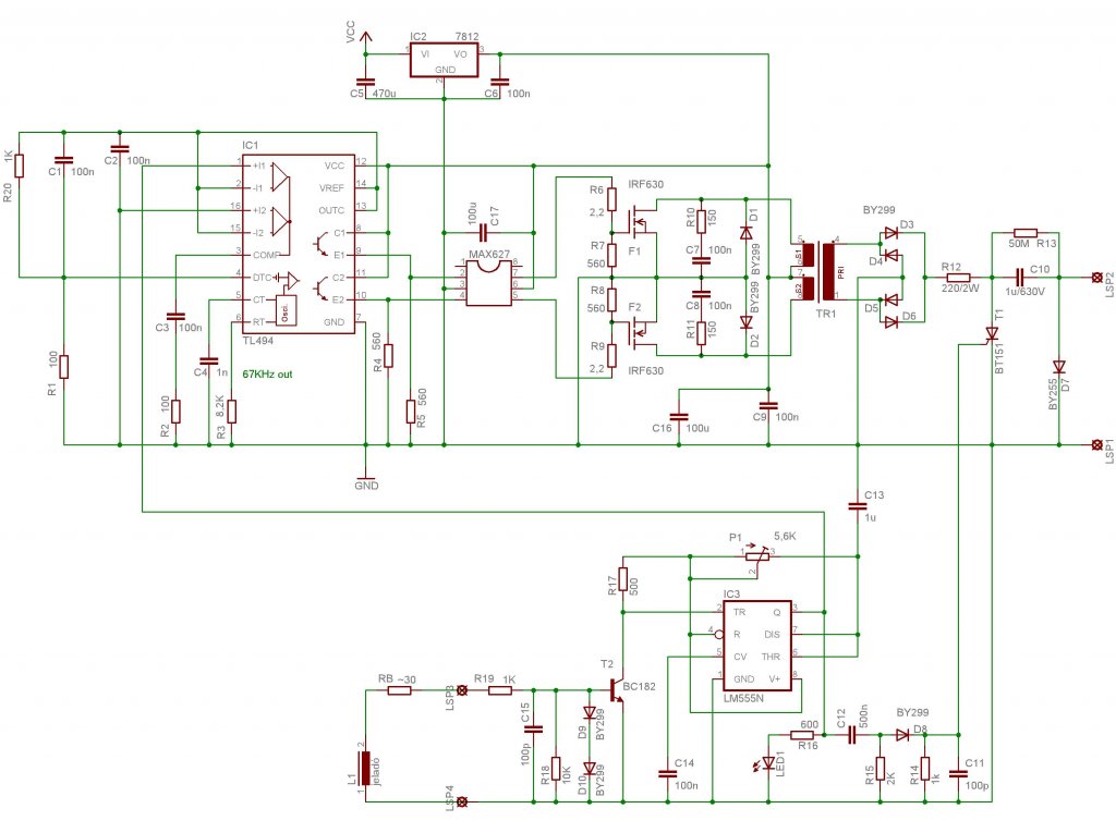 A kapcsolás jó és müködik (persze tápot gondoltam hogy kell rá adni 4-8 és 1-es láb.)Mindenesetre egy valamit rosszul kötöttem be vagyis besem kötöttem és ezért nem akart müködni a dolog.De mostmár megy szépen és dobálja a szikrákat!Köszönöm hogy segitettél