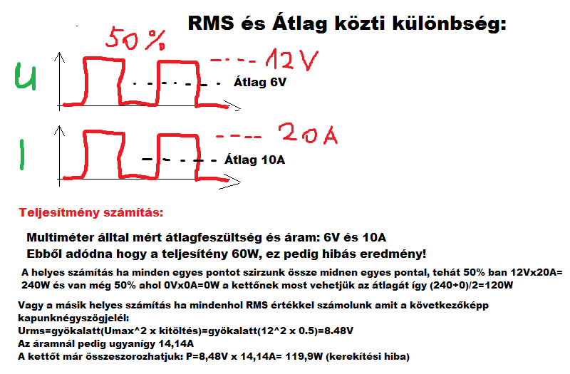 True RMS-t mér? A multik általában átlagot mérnek. Impulzus szélesség modulációnál tejesen más értéket az az RMS és az átlag. MMW számításnál pedig szerintem mindenhova az RMS érték kellene.