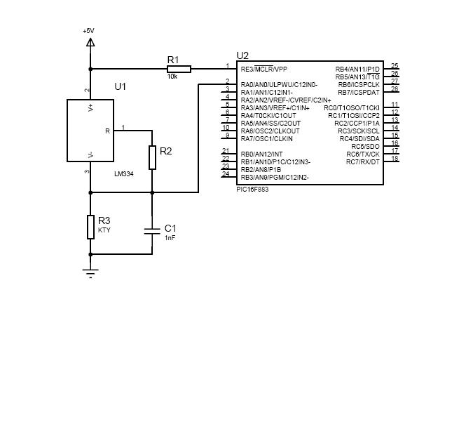 Egy pic, amiben van A/D átalakító és egy áramgenerátor kell hozzá. Az áramgenerátor táplálja a KTY81- et, a föld a referencia. A KTY81 -en eső feszültséget a PIC méri az A/D segítségével.