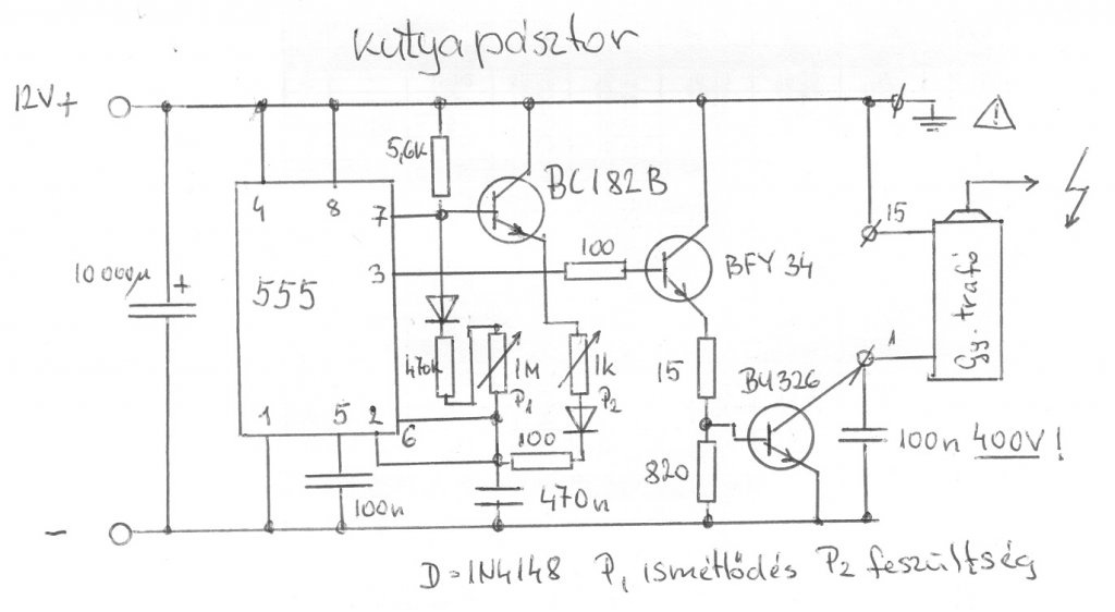 Sziasztok! Egy egyerű "kutyapásztort" szeretnék csinálni. Arra gondoltam hogy egy Xenon trafó (12VDC, 35W, 25KV) és egy indexrelé segítségével. Segítségeteket kérném, méghozzá abban hogy hogyan csökkentsem a kimeneti feszültséget, mert szerintem az egy picit erős lenne.. láttam már embert leülni a trafó érintésétől