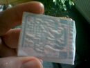 Sokkal jobb hordozó ehhez a módszerhez, ami nekem feleslegessé tette a P20 vagy PNP transzfer fólia használatát, az az öntapadós füzetborító hátlapja. Ez azért különösen alkalmas, mert van rajta egy paraffinszerű réteg, ami megolvadva körülveszi a minta vonalait, és nem engedi, hogy a festék meleg hatására szétfusson, így nem számít a melegítés ideje. Jó tapasztalataim vannak vele, a legfinomabb rajzolat is átvihető, maratáskor is tökéletes kontúrt ad. Itt van pár kép az így készült NYÁK-okról.