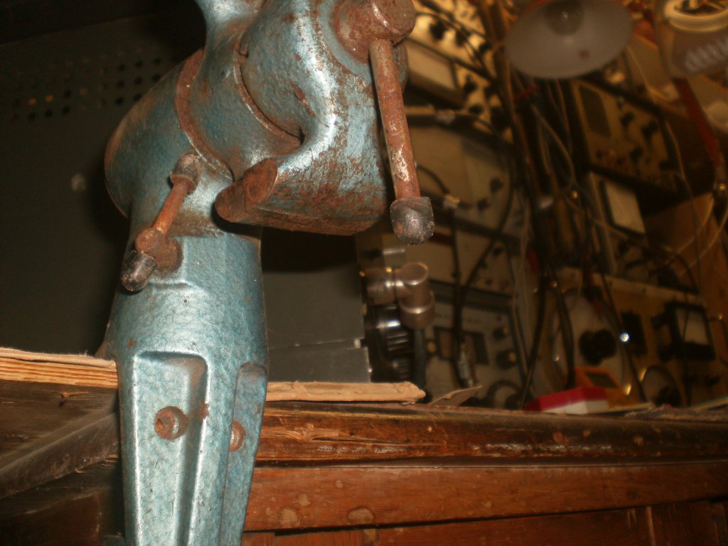 Végre megtaláltam kis műszerész satumat.Nem mai darab lassan olyan idős mint én.A műhely felújításkor eltettem de nem emlékeztem rá,hogy hová,lényeg az ,hogy megkerült.Néhány képet mellékelek róla.