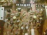 Úgy vélem ez az eredeti készülék. Ennek az oldalnak a rajzai jelentős hasonlóságot mutatnak vele. A fekete dobozkák mik lennének? A táp szerint teljesítmény ellenállás - akkor a végfokban is van egy? A linkben szereplő táp rajz szerint az áramkorlát alsó határa 6A. Ez bőségesen kiszolgálja a 8 ohm-os terhelést. (A fényképen nem találom a végfok áramgenerátorának két soros diódáját. Jól követhető, hogy a kimenet egyenesen a csatlakozókra van kötve, védelem nincs a készülékben - leszámítva a hálózati biztosítékot és a táp áramkorlátozóját. A pufferek mellett látok két diódát és pár ellenállást, ezek szerepét nehezen tudnám beazonosítani.)