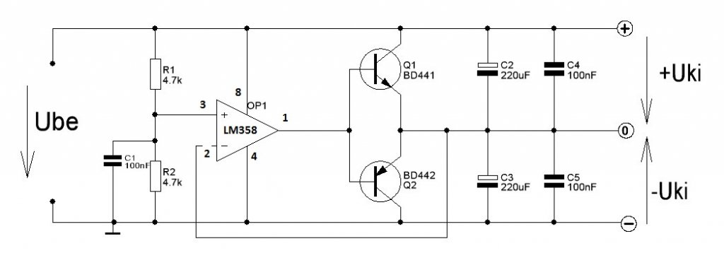 Kellene egy kis segítség. Egy felezőt szeretnék építeni. http://kapcsolasok.hu/images/stories/aderka/1/felezo.jpg Van is LM358AH ic-m. Viszont nem tudom, hogy melyik lába melyik a rajzon... Segítenétek? Köszönöm szépen