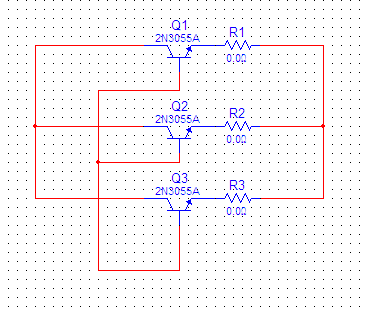 A rajz ettől függetlenül jó csak az emittereket egy-egy 0.1 Ohm - os ellenállással sorosan kösd össze. A kollektorokat direktben összekötheted .