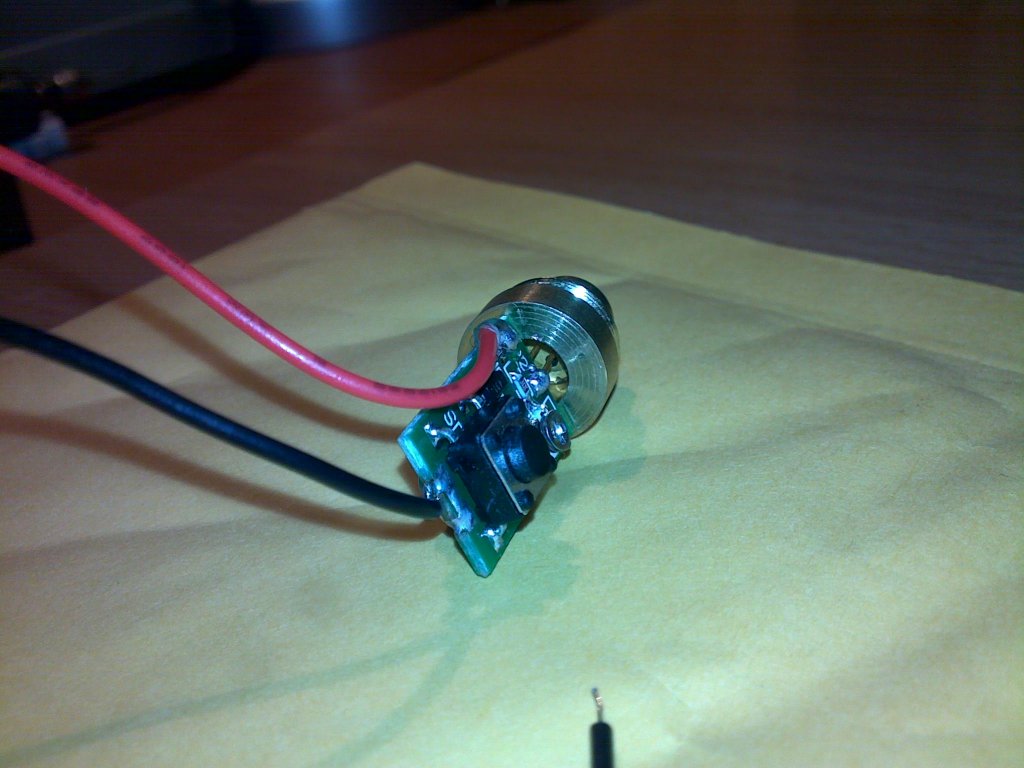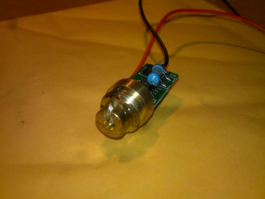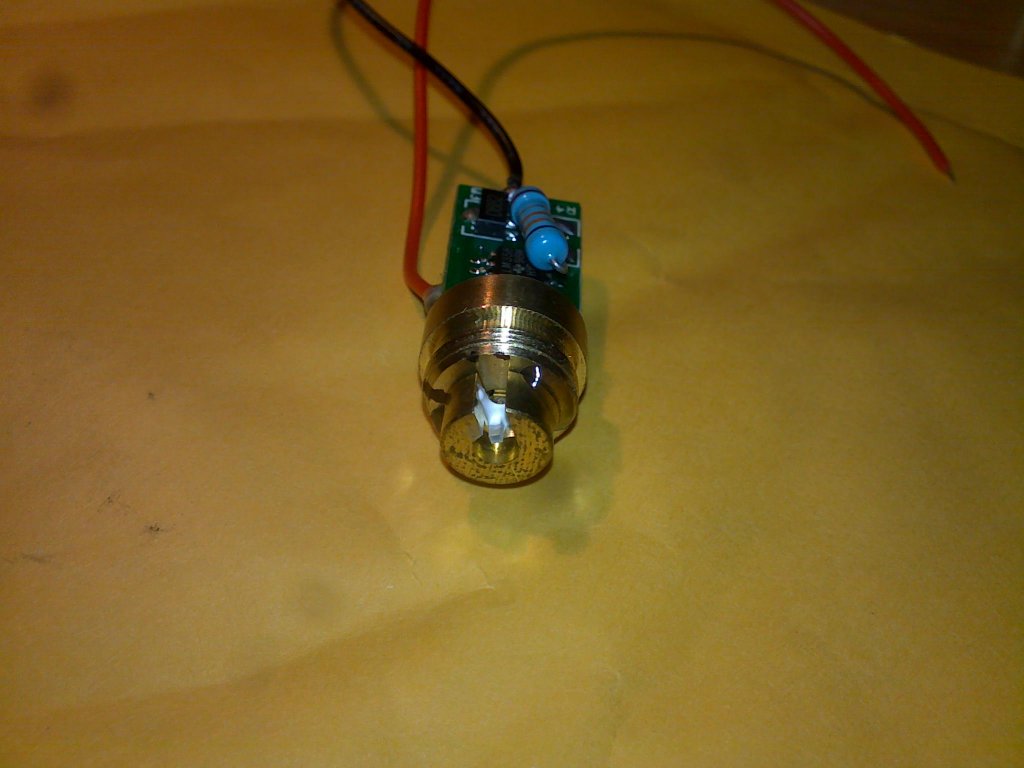 Esetleg akkor lehetne megoldani (kitolni a diódát) ha leszedném azt a nyitott rézhengert amibe a kristályt ragasztották. Mert, hogy az a rézhenger is oda van ragasztva... De utána a beállítása iszonyatos precizitást, türelmet és nem utolsó sorban védőszemüveget kíván!