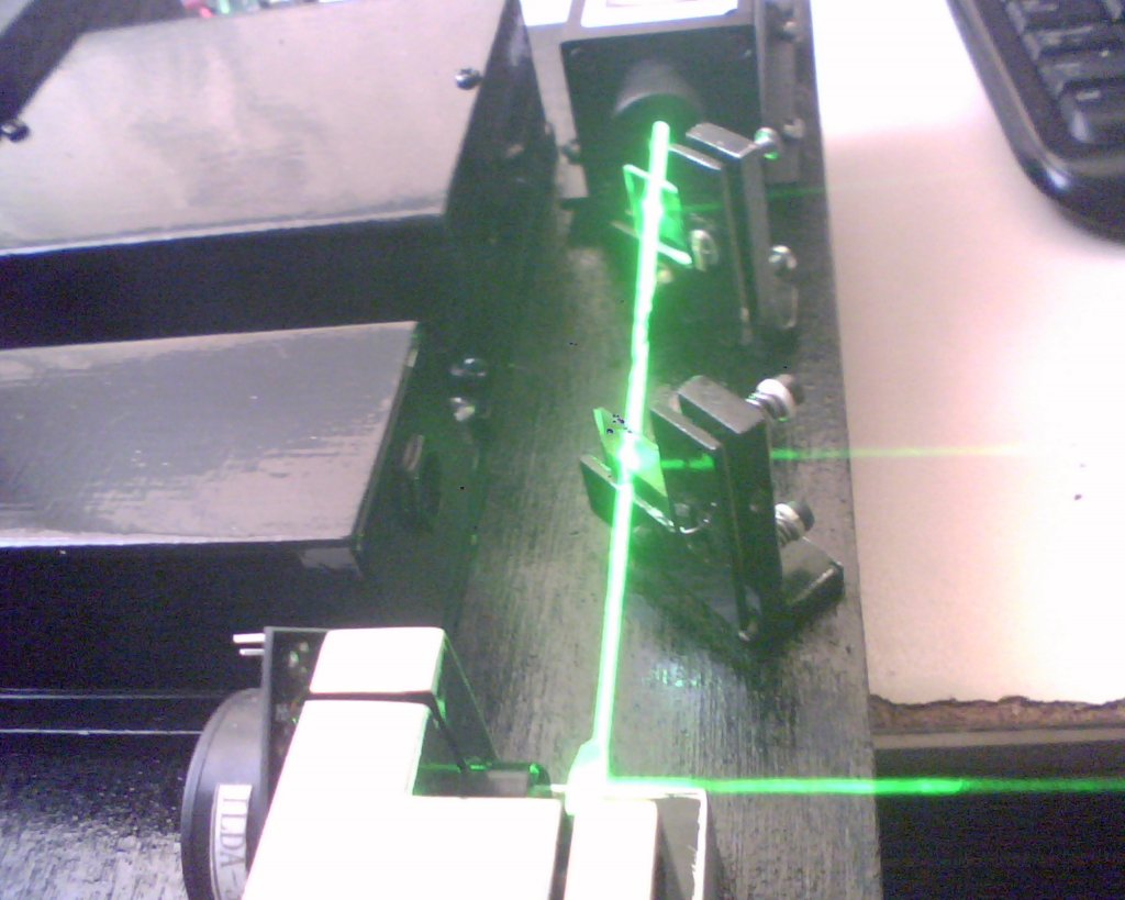 Spekrométer és LPM,ami kellene. LPM egyértelmű, a spekrumanalizátor,pedig a generált hullámhosszok pontosságához,2nm eltérés a fámától már nagyot ronthat mindenen.Ez a hőmérséklettől függ,sajnos a KTP-t,mint kritikus elemet,nem tudom fűteni,egyetlen amit tehetek,elszigetelem a hűtött alaptól,igy idővel bemelegszik(és melegszik is majd tovább,amit viszont nem akarok) Most,hogy használom,nagyjából 20 perc kell,amig stabilizálódik a hőmérséklete(lézeranimáció alatt,modulálva),nem ugrál(szemre) a teljesitménye.
