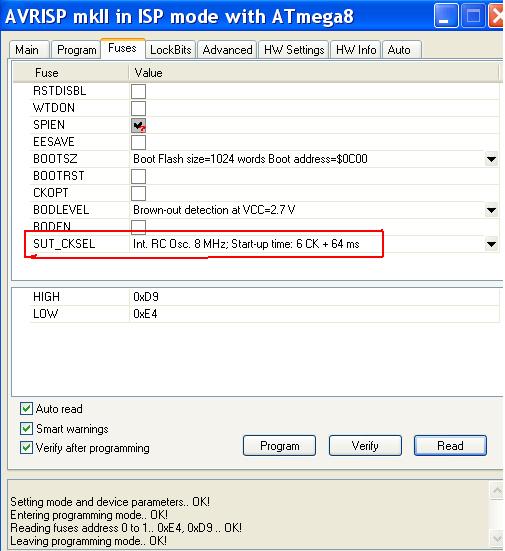 Lehet hogy csak az én kezdő butaságom volt, rájöttem, hogy nem a programba kell írni az oszcillátor frekvenciáját, hanem az égető résznél kell beállítani, ezzel szívtam egy hetet, mert nem azon a frekvencián pörgött az atmega8, mint én akartam, ma este jöttem erre rá örömünnep közepette... Tehát másoknak is mondom, akinek esetleg hasonló gondja lenne, mellékeltem egy képet, az avr studio 4 nél agy kell frekvenciát állítani!