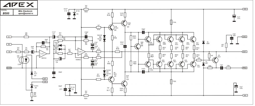 A TDA-k azok semmik. Ez egy Apex B500 típusú végfok, ami hasonlít Caston vagy Siva PPA 2400 erősítők végfokaira. Szóval oldalanként 1200W teljesítményűek. 90V +/--kell megtáplálni őket. Ha kisebbet teszek beléjük, akkor összecsuklik a hangjuk. Az viszont nem lenne jó hangosítás vagy diszkó közben.