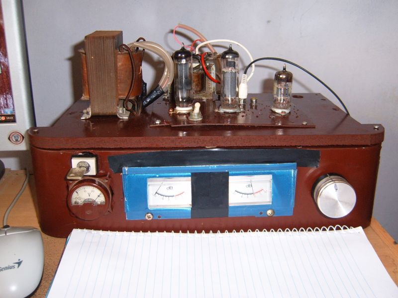 Üdv! Pár hete kértem el84 kapcsolást. Kis leállás után amit az időjárás okozott, mostanra majdnem kész az el84-es erősítőm. A régi ecl86-osom dobozát alakítottam át abban kapott helyet 3 csővel megy ez81, ecc82 és el84. Gyönyörűen szól. Papír szerint 4és fél wattos de fülre ítélve úgy 2watt vagy 3 körül jelentősen letorzít. Ami jelen esetben kb a hangerőszabályzó 3/4 állása. Egyéb gondja nincs. Hál istennek brumm és gerjedésmentes. Csak trafótakarót miből készítsek? Fémhez nincs eszközöm csak fához :S Színben a trafótakarókat tervezem kékre, valamint elől ahogy illeszkedik a teteje, az a rés elé okker színű takarólemezt. Ha valakinek van ötlete trafódobozra az kérem segítsen köszi!