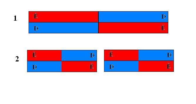 Tanácsolom, hogy csínján bánjatok a mágnes darabolással, mert a pólusok nem választhatók el egymástól. Mellékelek egy képet és tapasztalatom szerint egy vinyó mágnes az 1-es ábrán lévő sarkokkal rendelkezik. Ha ketté vágjátok, nehogy két olyan mágnes darabotok legyen, mint a 2-es ábrára rajzoltam !