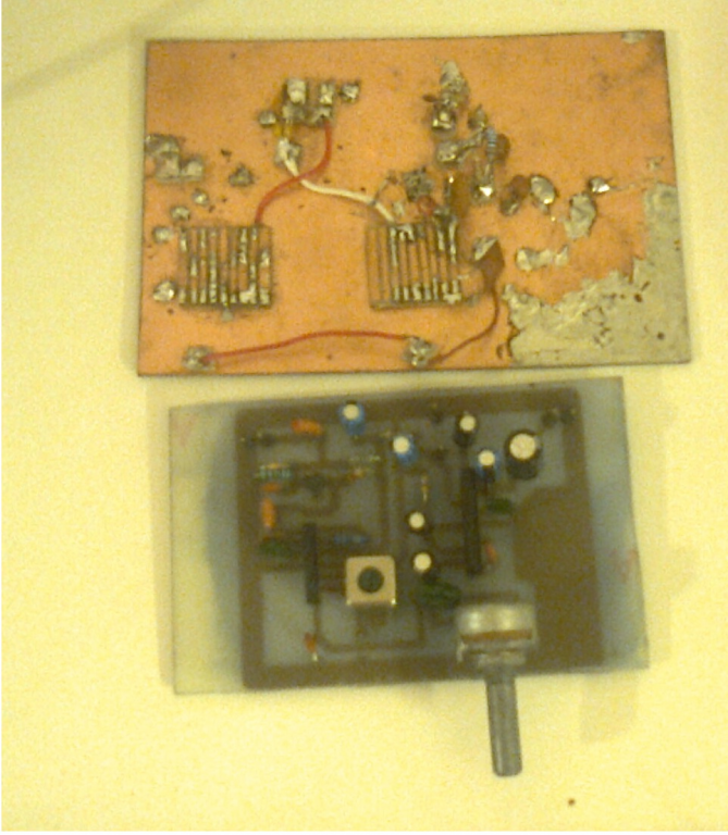 Jelentem, elkészült a KF fokozat. Megérkezett 2 db KIA7130 as IC-is. Az FM szignállal való párosítás után küldök pár szkóp ábrát az átviteléről. A nyák felette a régi verzió elbontás után.