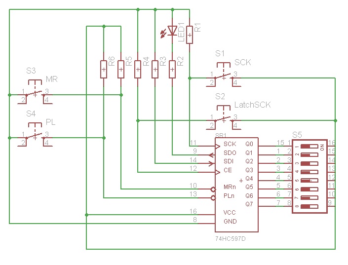 Még mindig a 74*597-es szériával bíbelődök, hogy jól vigyem be a programba. Építettem egy kis próba kapcsolást, hogy megnézzem, hogyan is működik. A kapcsolás valahogy így néz ki. pl.: Q1&3 - 1 Q0,2,4-7 - 0 (pontosabban nem 1, hanem lebeg?) nyomási sorrend: LatchSCK 1x PL 1x SCK 8x Na már most ha elkezdem a shiftelést a SCK gomb nyomogatásával, akkor nem csak a beállított "bitek" jelennek meg nekem, hanem 4 lenyomásig, tehát a 0-3. bit, logikai 1est ad a 9. lábon (Serial data out). Mi lehet a gond? Amit meg szeretem volna tudni, hogy ha a shift regiszterében 1es van és a latchben 0 akkor a latch a PL aktiválásával felülírja e azt vagy sem? SB