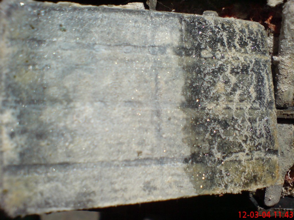 Íme egy bontott akku szulfátos cellája (felitatott savas).