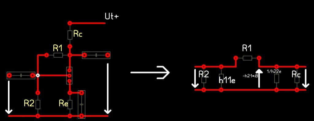 Erősítő alapkapcsolás témában kereslek fel titeket ezúttal, mert a házi feladat, elmélet topikban sajnos nem kaptam használható választ. Hátha itt fogok. Idézet: „(kapcsolást sprintben rajzoltam meg mert más célprogramom momentán nincs) A kapcsolásból felírtam a bemeneti ellenállás, illetve a kimeneti ellenállás képletét, de nem nagyon sikerül a feszültség és áram erősítés képlete. Rbe= R2xh11e x[R1+(1/h22exRc)] Rki= Rcx1/h22ex [R1+(h11exR2)] Szerintem így alakul a dolog, de ha nem szóljatok! Az erősítésekkel viszont nem boldogultam. Ötletek?”