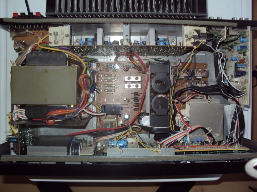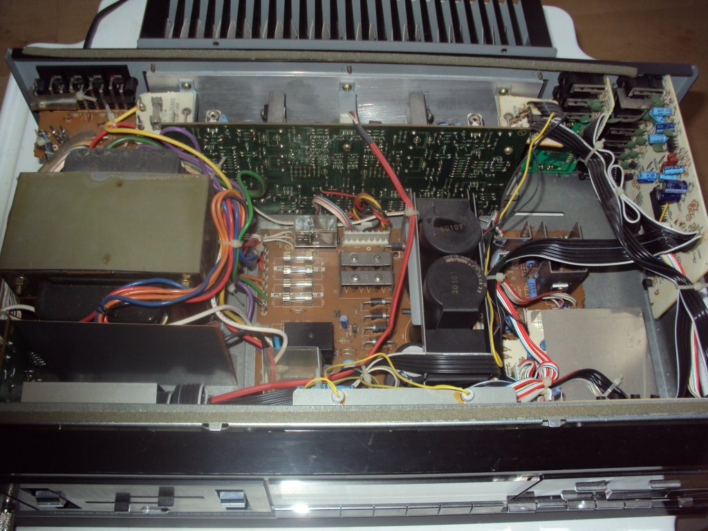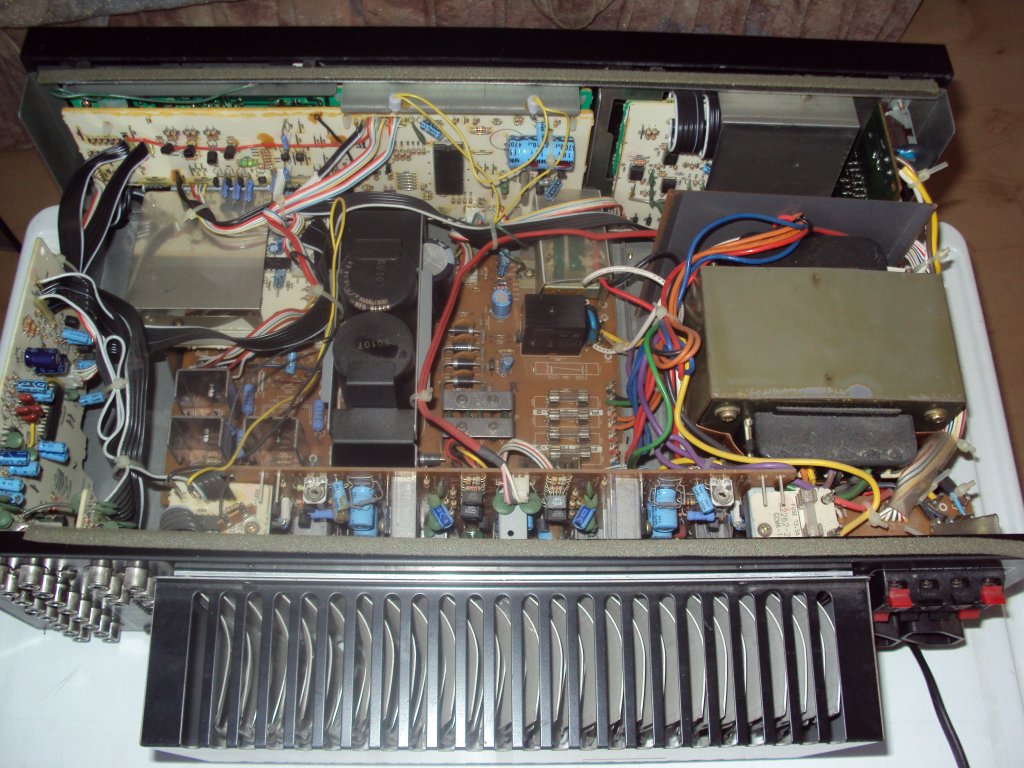 Készítettem pár képet az erősítőről. Én úgy látom, hogy nem piszkált bele senki sem, de mint mondtam nagyon nem értek ezekhez. Nehéz és tele van mindenféle kondenzátorral. Sérülést nem láttam benne. Az erősítő egy Fisher CA-890 tipus. Nemtudom, hogy megéri-e vele foglalkozni. Minden tanácsot szívesen fogadok.