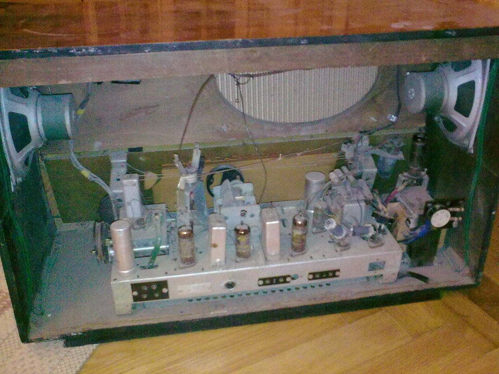 Igaz.. talán az a legegyszerübb.. Amúgy szegény ez is nagyon romos.. Egy padláson volt,és szétrágta az egér a tekercseket.. Erősítőként tudom használni,úgy hogy rátettem a PU bemenetre egy Grundig Walkmant.. és nagyon jól szól.. Annak ellenére is hogy csak a nagy ovál szól. A mellette lévő kicsi is süket.. ott van rajta egy 10µF 30V,amit cseréltem,de nem jött be. Továbbá lehet rá tenni 5ohm-os hangszórót is.. ezt is megpróbáltam.. igaz egy 4ohm-os széles sávú Orion TV-hangszóróból készült kis láda.. szól vele.. de annyival nem jobb..