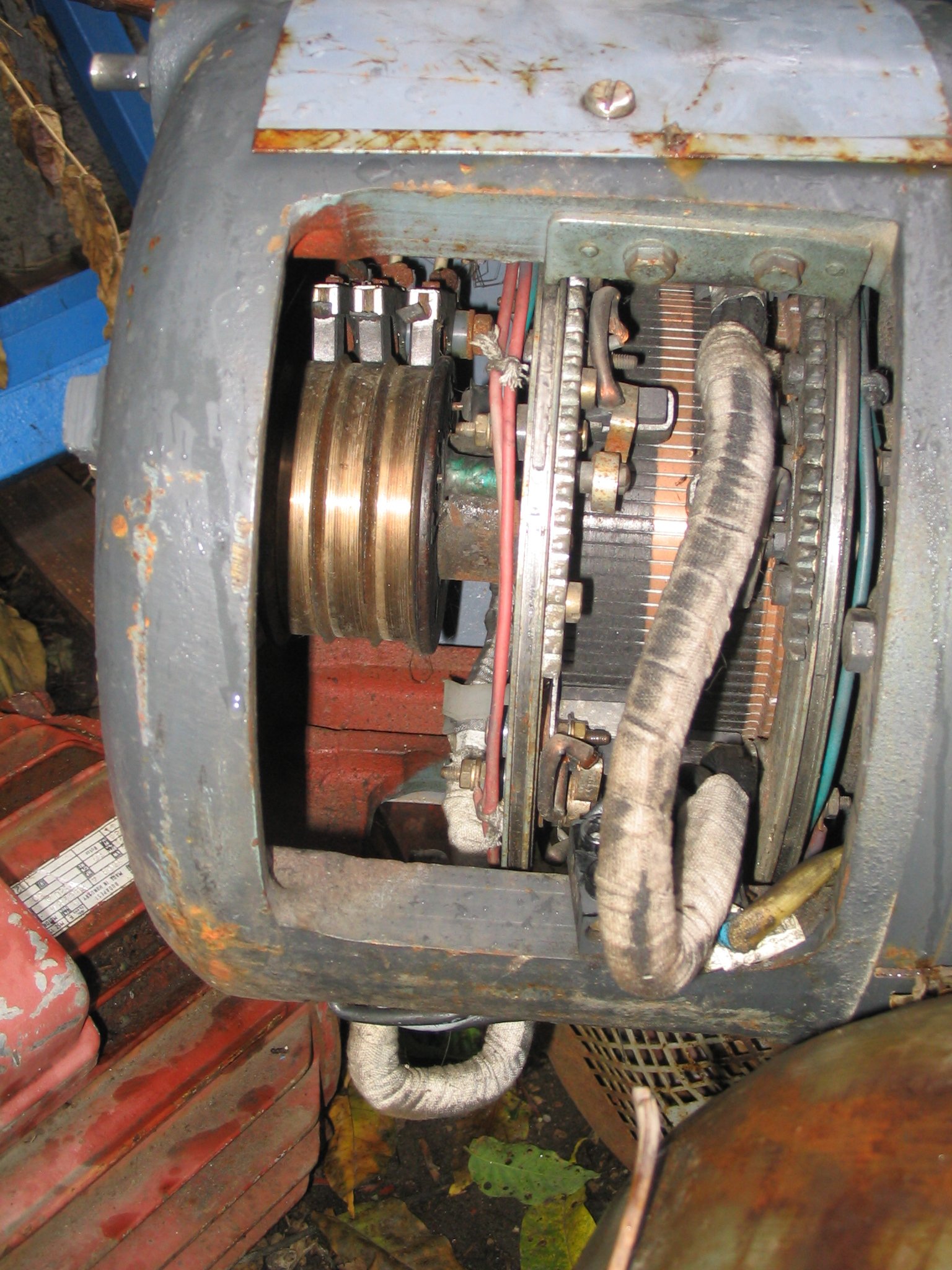 A File 0009 A gép dinamó részének a kefe hidját mutatja a szénkefékkel és komuttátorral. A file 0020 a szabályzó egy részlete a "(a lelke a hengeres részben rejlik)" Így igaz! Ez egy tolóellenállás Tulajdonképpen egy nagyra nőtt huzalpotméter ami egyenes testre készült nem gyűrűre. Ezek - tipustól függően - több A áramot elviselnek és akár kW nagyságú teljesítményt is képesek elfűteni. Villamos gépeknél többnyire változtatható ellenállásként használják. A gerjesztő áram szabályzásával változtatják a kimenő feszültséget-áramot.