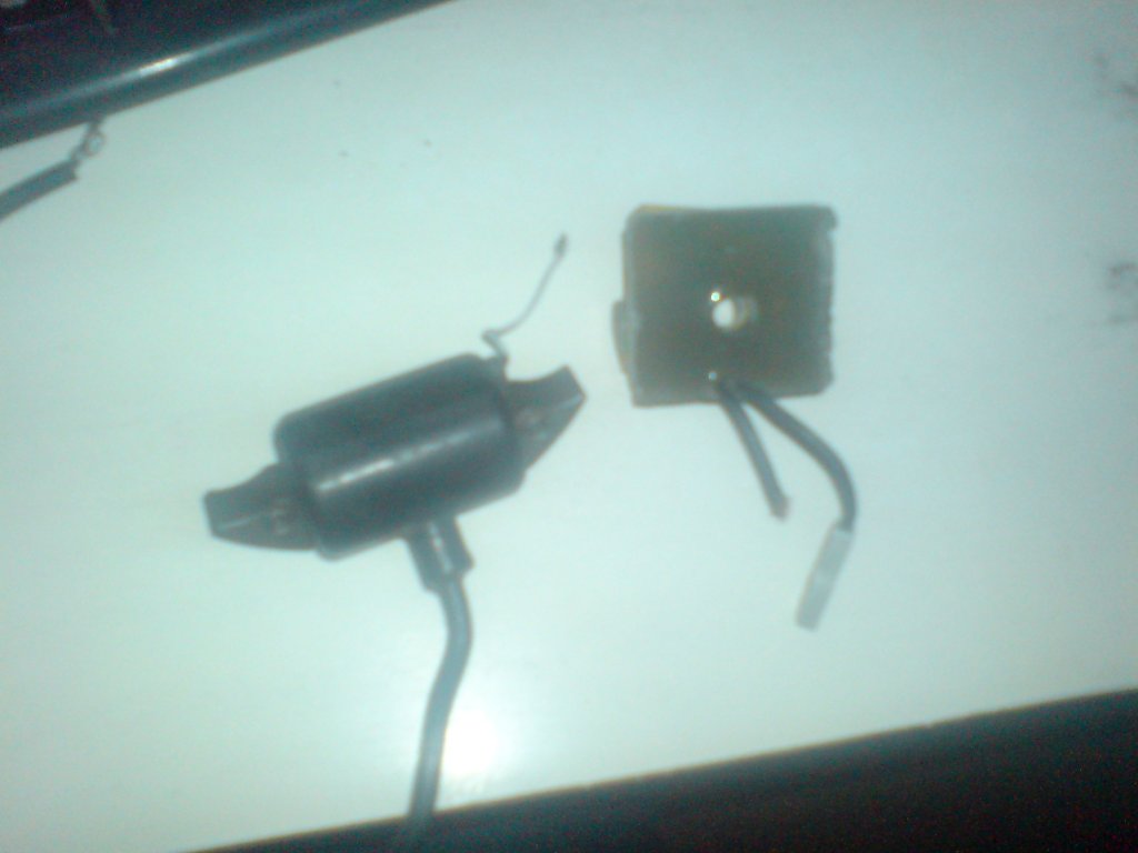 Üdvözlök mindenkit! Nos most mindenki segitségét kérem,mert sikerült egy olyan MIO fűnyiró gépet vennem amelynek sajna tönkre van menve a gyújtása. Naponta rádióteknikával foglalkozom,de ez most feladta a leckét rendesen,nem fogom fel a müködési elvét,egyszerüen nincs benne logika. Sem nem tirisztoros,de nem is mehanikus. Vagy én sem tudom minek mondják. ime a képeken megtekinthető. Vagyis van benne egy gyújtótekercs,és egy 5x5 cm-s kis kocka az oldalán és enyi. kisebb ügyetlenkedés után szét is sikerült bontanom ezt az alig beöntött kis dobozkát amin csak "2" kábel van. Vagyis szétbontás után derült ki hogy belül az a két kábel is össze van kötve, a jelentösége hogy egyik a leálitó gomb,a másik meg megy a gyújtótekercsre.. Persze a dobozka aluminium bevonat vagyis a massza. szeretném összerakni mint eredeti álapotu gyujtást.Meg szerintem van is ithon minden alkatrészem, sikerült is némileg kibogoznom. tehát van benne néhány dióda,egy BC 337,hőellenálás, stb. Meg van egy alkatrész amit nem birtam teljesen leolvasni anyi látszik belőle hogy BT16.. Hát kicsattannék a boldogságtól ha valaki tudna ehhez egy rajzot feltenni.. Ime a képeken látni hogy csak enyiből ál.