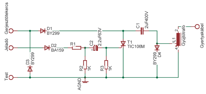 ![]() Ennél kevesebb alkatrész már nem lehet![]() A másik kapcsolás is működik az R1 0-100 ohm lehet. Nekem egy sima átkötés volt. Viszont egy idő után elkezdett sztrájkolni és hiába mértem nem találtam hibát, mégse volt szikra. Aztán jött a 3 alkatrész és a mai napig az szolgál.