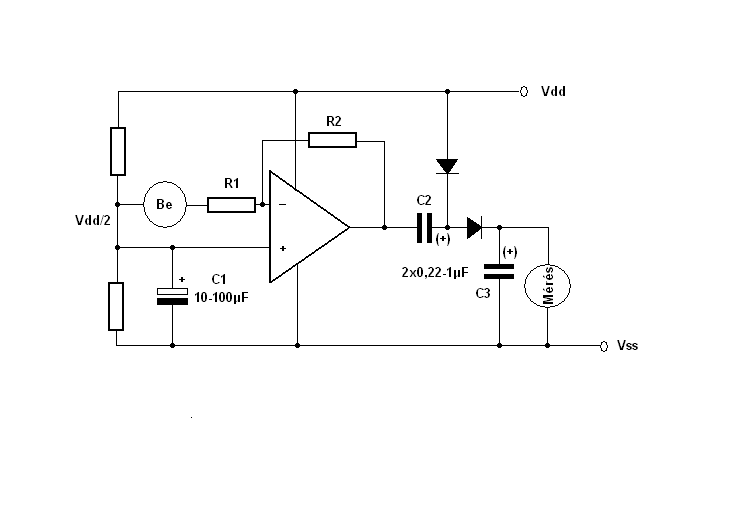 Szerk.: a "Mérés" ponton a csúcsfeszültség elérheti a 9V-ot.