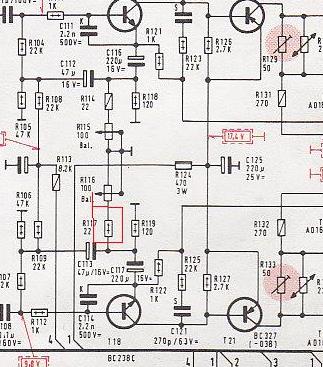 Rosszul hitted, DC nem lehet rajta, csak akkor ha C117 zárlatos lenne. Rajzon feltüntetett DC feszültségeket ellenőrizd. Fokozatonként haladva, hátulról előre ki lehetne deríteni hol van a hiba. Ehhez műszerezettség is kellene. Egy egyszerű jelgenerátor is sokat segíthetne.