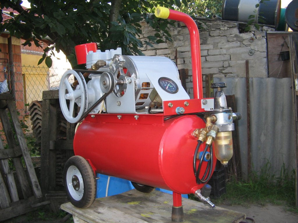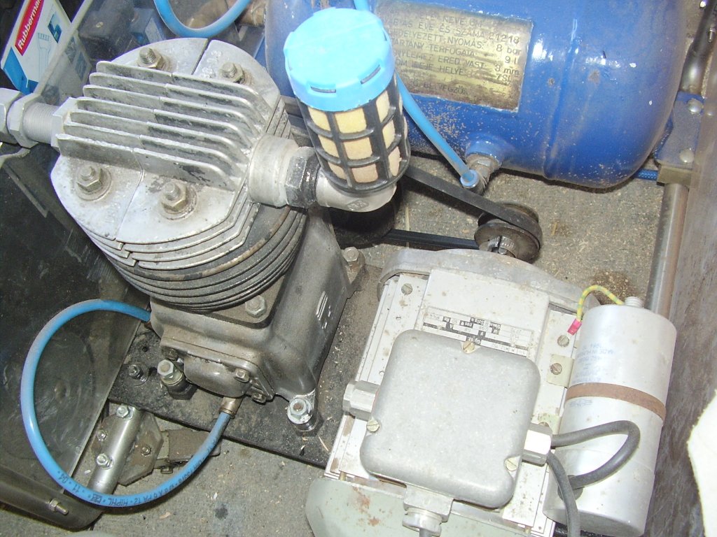 Én is kompresszort építek, mert a nyáron tönkrement a kicsi amit nyüstöltem. (Autó festésre, légszerszámokhoz, és esetleg kisebb homokfújásra szeretném használni.) Szereztem egy szentesi gyártású 100 L-es kompresszor tartályt, van hozzá egy 4 kW-os 3 fázisú motorom, és a télen vettem egy két hengeres Zil légsűrítőt. (+ még tervbe van valami + tartály)