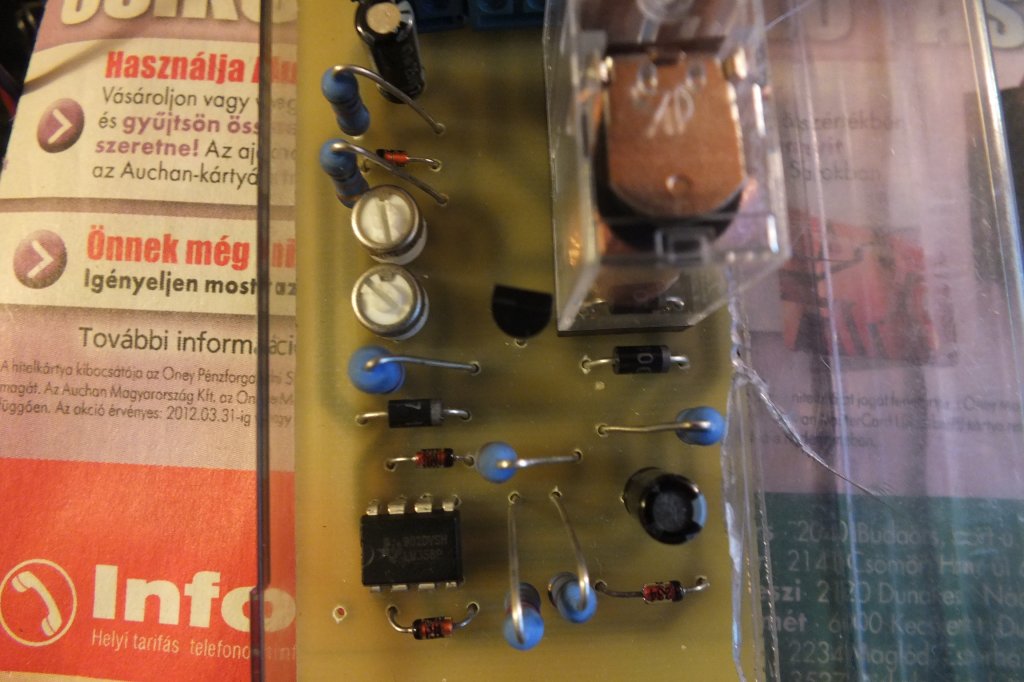 Összedobtam én is a kapcsolásodat. Az 1%os ellenállások sanja nem jöttek össze, így a referencia fesz. 7,91V. A trimmerekkel sikerült beállítani egy ideális ki-be kapcsolást.Legalábbis asztalon. Ha lesz kedvem a hétvégén rádobom egy akkura. A nyákon egy aprócska módosítást követtem el, mivel nem volt a boltba az a fajta trimmer mint amit használtál.Normál fekvő (LI10, PT10) trimmert alkalmaztam. Valamint a referencia fesz. körbe nem találtam itthon 47µF-os kondit, így 100µF-ot tettem be, gondolom ez nem fog gondot okozni a későbbiekben. A TL072 helyett pedig LM358at tettem be. Relének 12A-es Findert fogok alkalmazni egy darabig biztos bírja majd.