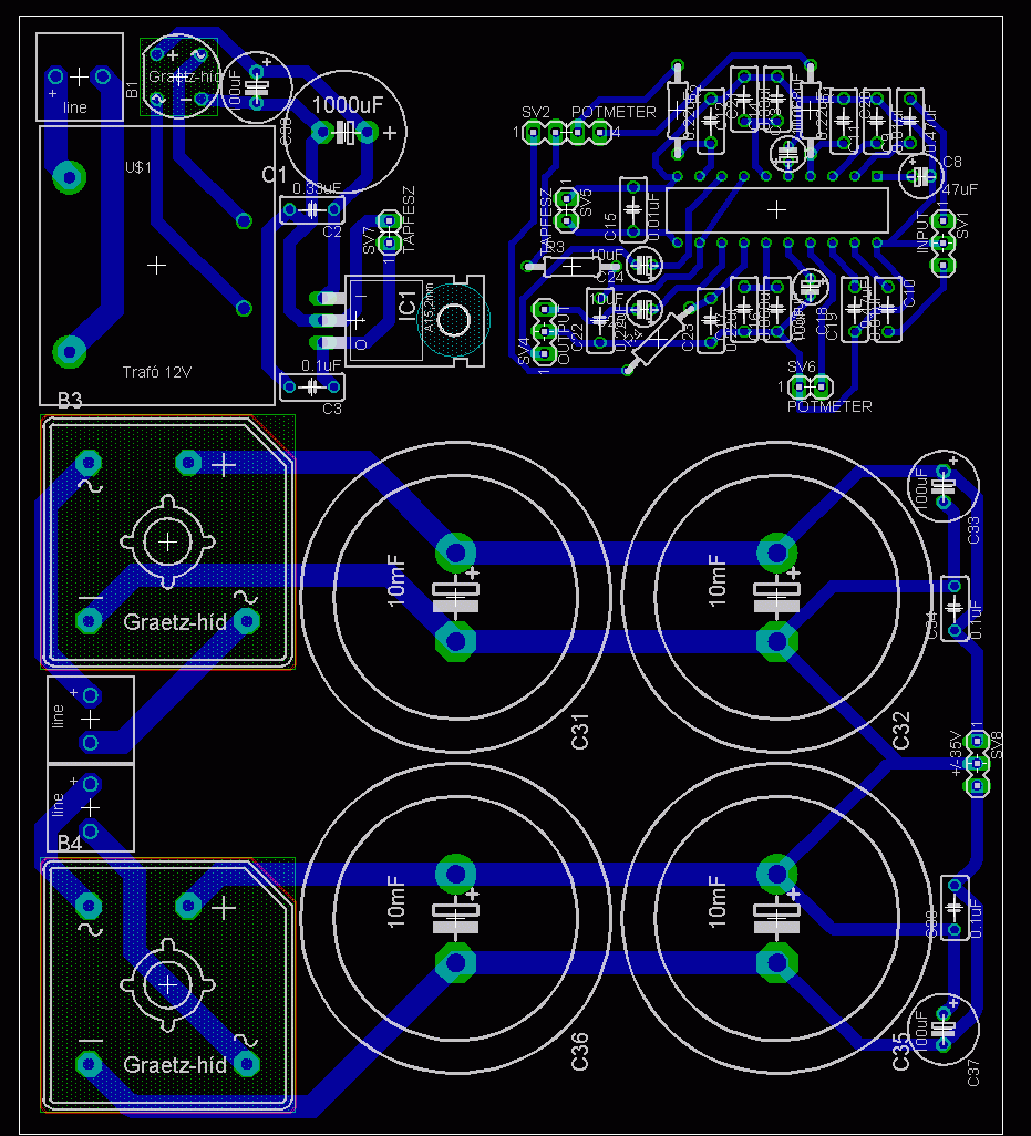 OFF Honnan szereztél ekkora kondikat (egyébként mekkorák? nem tudtam elolvasni)? Én csak 10.000µF-eset tudtam venni a LOMEX-ben (legalább 50V-os kellett). /OFF