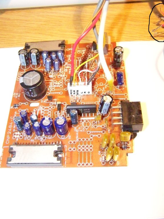 Legnagyobb kondi lábaira megy a tápfeszültség (acc és g-vel egyenlőnek kellene lennie), az L R - jobb bal bemenet plusz kell hozzá a G is ugye, mint föld. Az ILM-ről fogalmam sincs, meg kell keresni, hogy az IC hányas lábára megy, meg kell keresni az IC adatlapját, és el kell dönteni, hogy oda mit vár.